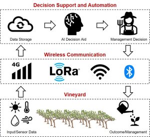 This article provides a brief introduction to smart agriculture technology concepts, and some practical issues during their implementation in the Washington state vineyards for near-real-time crop monitoring and vineyard operations management.
